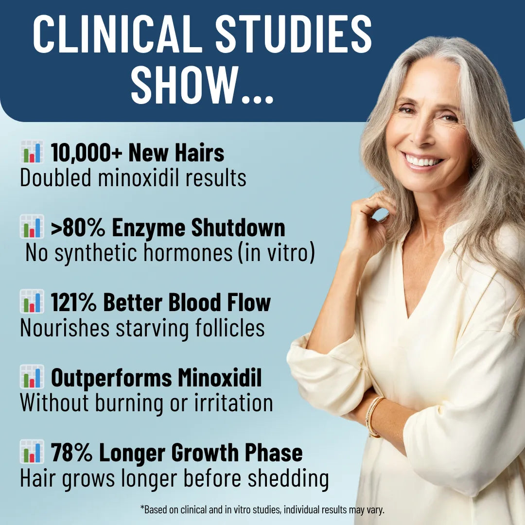 Minoxidil comes with a cost: dry, itchy scalp… unwanted facial hair… and losing progress the moment you stop.